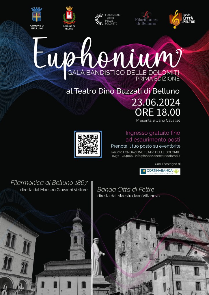 La Filarmonica di Belluno 1867 e la Banda Città di Feltre vi invitano alla prima edizione del Concerto di Gala Euphonium, organizzato dalla Fondazione Teatri delle Dolomiti.